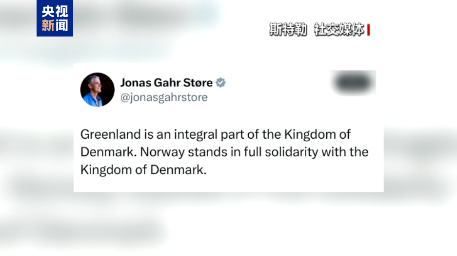 挪威首相斯特勒同一天表示,格陵兰岛是丹麦不可分割的一部分。挪威全力声援丹麦。